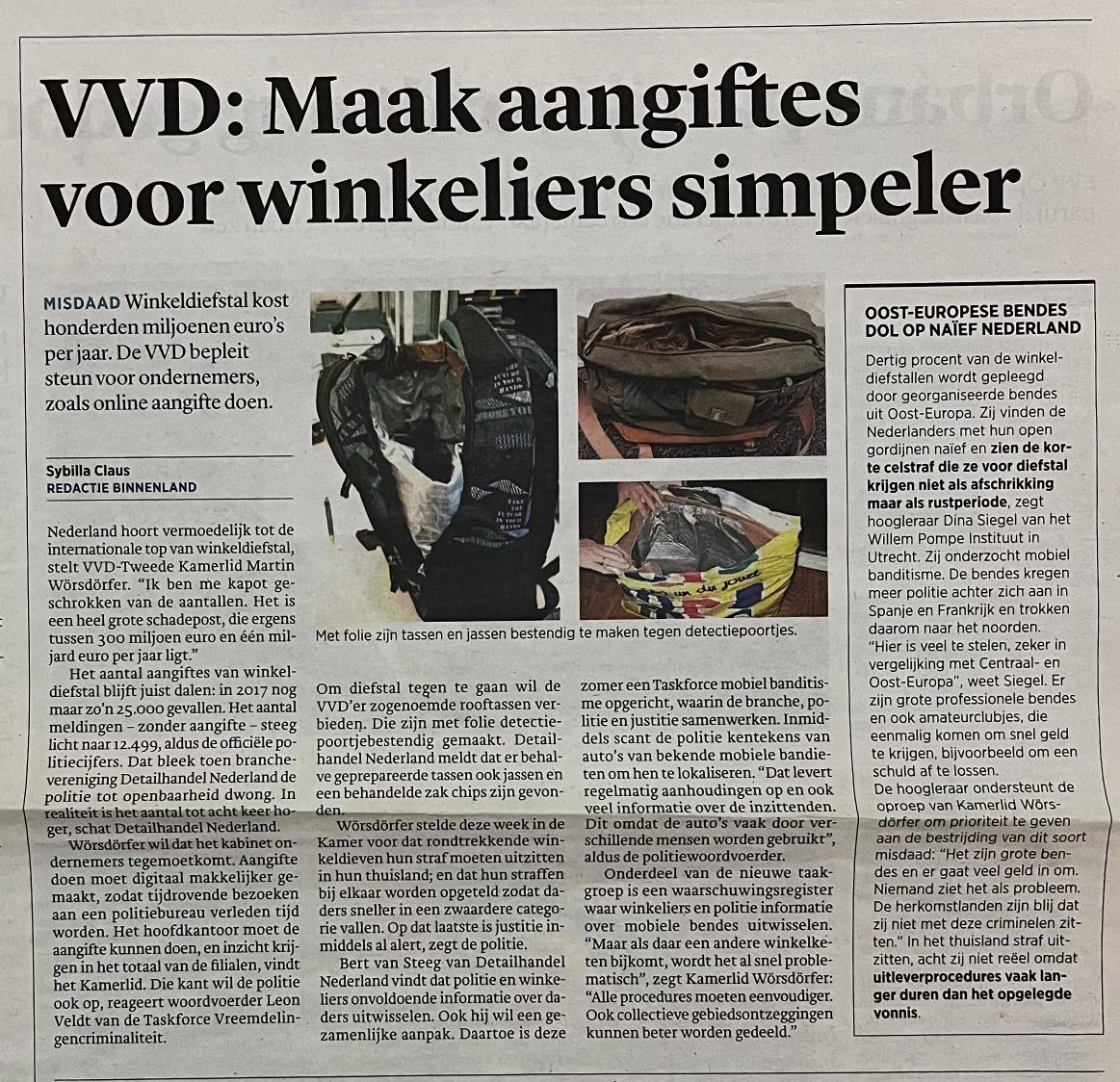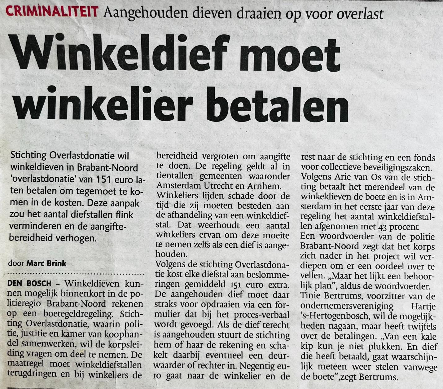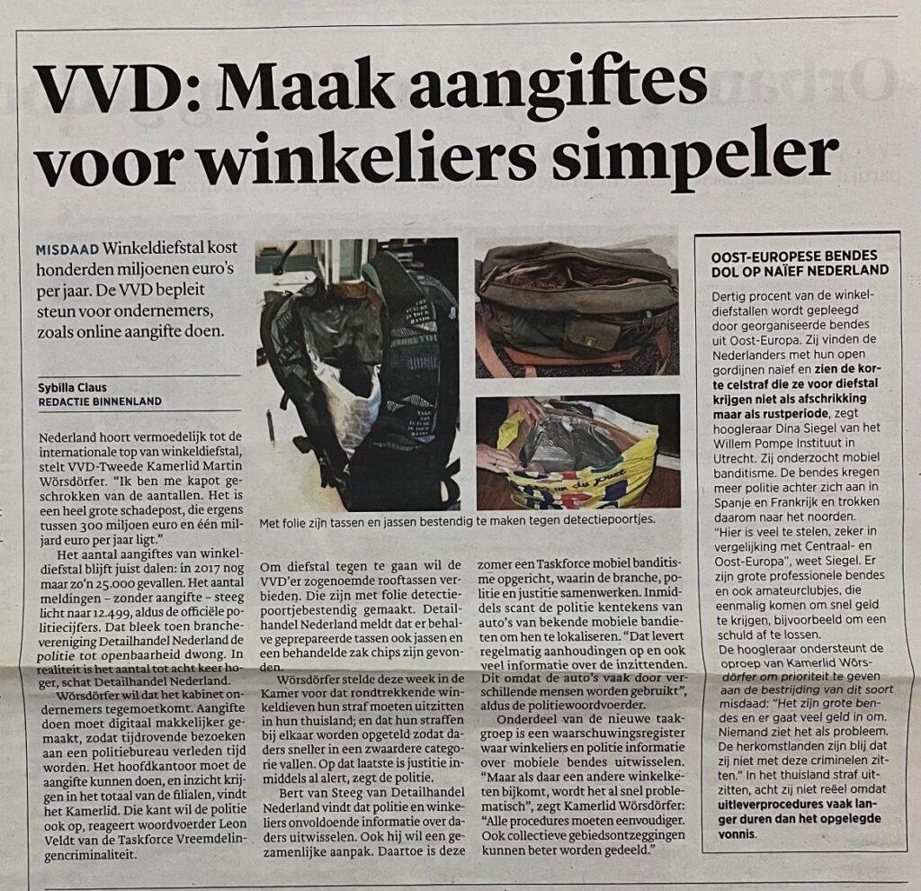 Lancering van het online platform bijwinkeldiefstal.nl voor de afhandeling van winkeldiefstal.